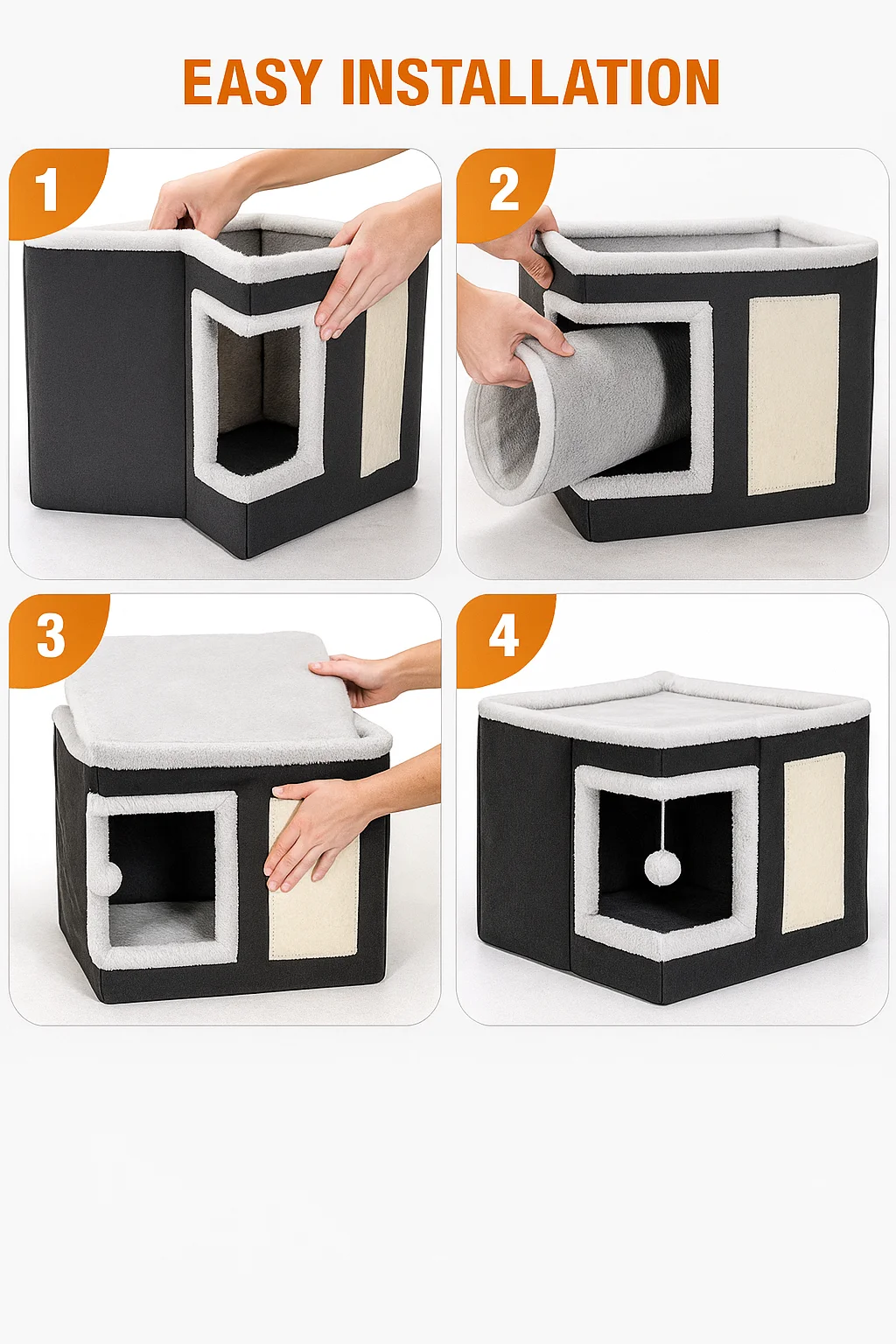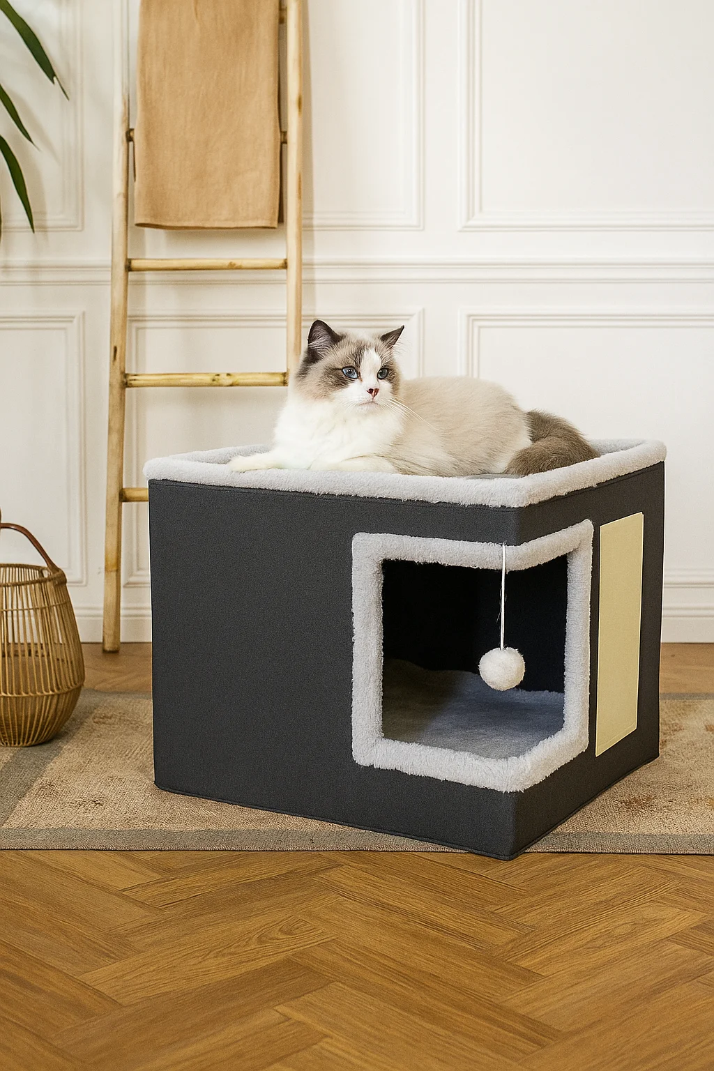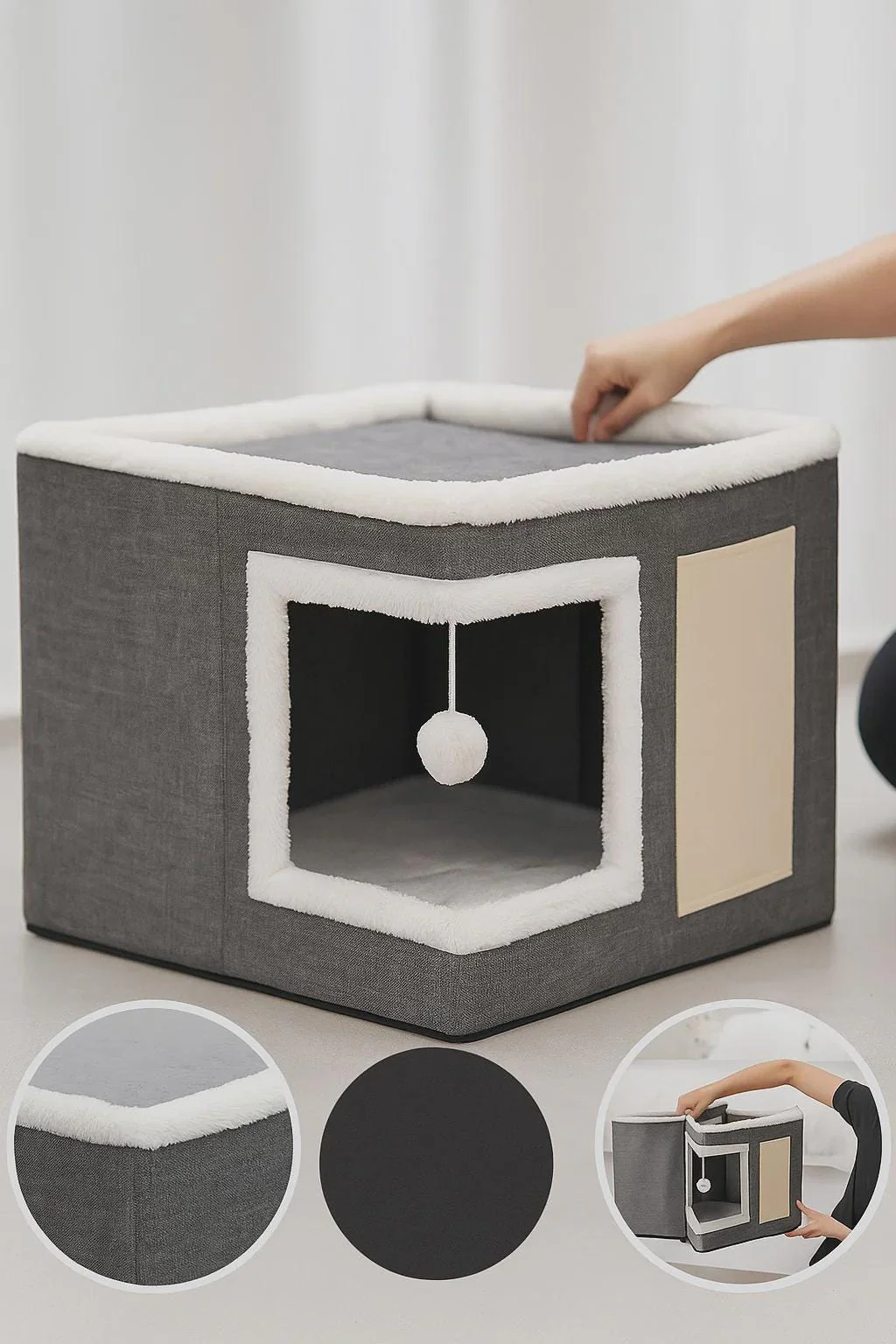 🐾 Give Your Cat Their Favorite Rest and Play Spot! Size: 40cm Discover our indoor cat bed, a foldable and stylish hideaway that combines comfort, practicality, and fun. With its ultra-soft reversible cushion and built-in scratcher, it quickly becomes the go-to spot where your cat will love to hide, sleep, and play. ✨ Why your cat will love it: Covered, secure hideaway – Perfect for cats who enjoy feeling protected and having their own private space. Reversible, comfortable cushion – Use both sides to adapt to the seasons and provide maximum softness. Built-in scratcher – Ideal for maintaining claws while keeping your furniture safe. Foldable design – Easy to set up, take down, and store, saving space. Versatile & stylish – Fits seamlessly into any modern interior. 💤 A cozy, multifunctional spot – This hideaway serves as a soft bed, a secure retreat, and a playful area thanks to its practical scratcher. 👉 Add this foldable cat bed with reversible cushion to your Etsy cart today and give your cat a space that combines comfort, fun, and peace of mind!