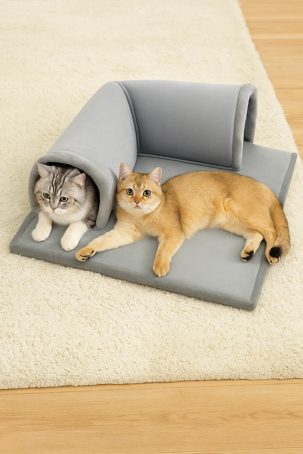 🐾 Give Your Cat a 2-in-1 Space for Play and Rest with Our Multifunctional Cat Tunnel Bed! Size: 46x46cm Designed specifically for indoor cats, this cozy bed with an integrated tunnel combines a play area, secure hideaway, and a comfy resting spot. With its spacious tunnel and playful hanging balls, your cat can run, hide, hunt, and then relax comfortably in their soft bed. ✨ Why your cat will love it: Bed and tunnel combined – Perfect for playing and relaxing in one place. Interactive hanging balls – Stimulate hunting instincts and keep your cat active. Secure hideaway – Ideal for cats who love to snuggle in a protected space. Cozy comfort – Soft cushion for peaceful naps after playtime. Versatile & practical – Suitable for kittens and adult indoor cats alike. 💤 A true indoor cat paradise – A space that combines fun, comfort, and tranquility. 👉 Add this cat tunnel bed to your Etsy cart today and give your furry friend a unique play and rest area!
